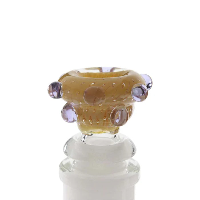 A beautiful crafted glass bowl. The colours compliment each other with different beads to contrast the main colour of the bowl. 14mm and various colours available.