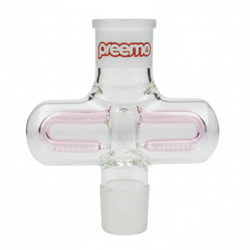 Preemo Build-a-bong double sided inline percolator middle piece in clear borosilicate glass.