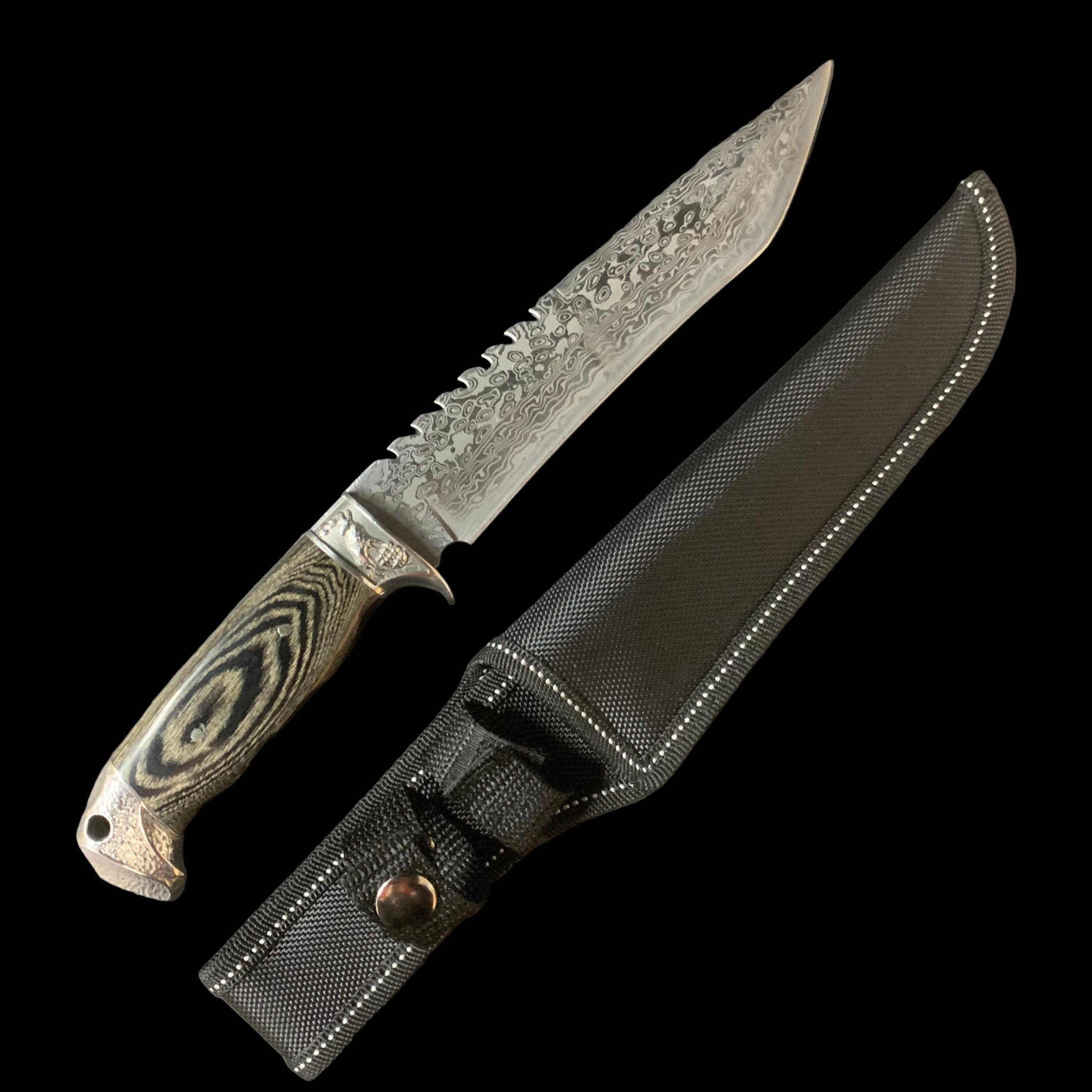Damascus hunting knife fixed blade